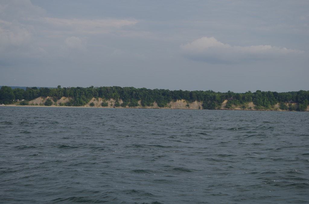One thing I enjoy doing when we sail only a mile from shore is to view the shoreline. The tall rock cliffs are so neat. It would be nice to explore them; but it seems like we are now on a time crunch.