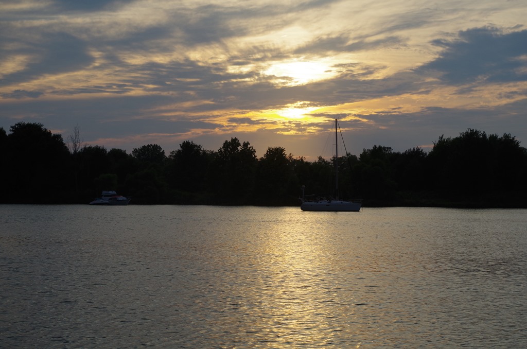 Well, it’s another good day but we did have thunderstorms during the night. With projected storms and winds we decided to stay an extra night here at Erie,PA what a beautiful park. We have been here now by car and boat. It sure is a nice place on Lake Erie; with great anchorage. Yesterday, on our way here, it sure was a delight to be able to sail. The light 8-12 mph winds were coming from the North East just off our Starboard rear. We zipped along at a blazingly fast 5.5-6.5 mph.