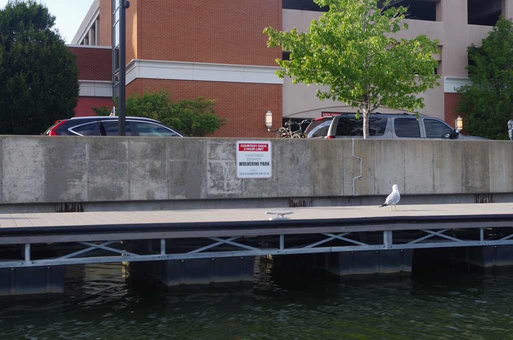 What a pretty hotel the Sheraton is. The sky walk is about 70 feet. So if you have a lower mast you will make it under it. Wolverine Marina and a Yacht Club are through here.
