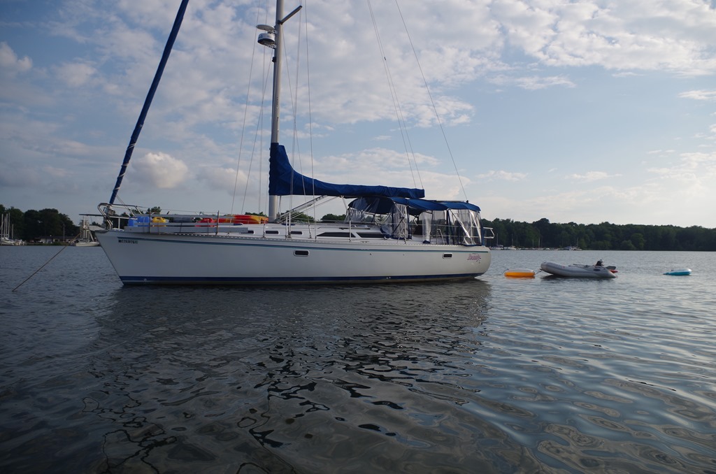 Beauty is anchored and loving it. The water depth is 14 feet. Tons of sailboats and powerboats are able to enjoy this bay. it has to be one of the most protective bays we have been in. We floated in our chairs and just did some good relaxing.