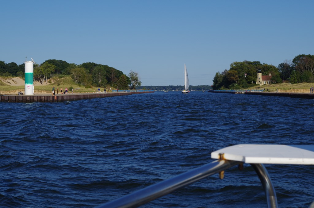 As we approached the channel to Ludington we could see some dancing waves on the pier to the lighthouse, but it was a great cruise from Manitou Island. We didn’t spend anytime in Ludington this time only anchored for the night. We anchored over by what I think is a power plant. The depth was 23 feet and the bottom was mud. Great holding power for our Danforth.