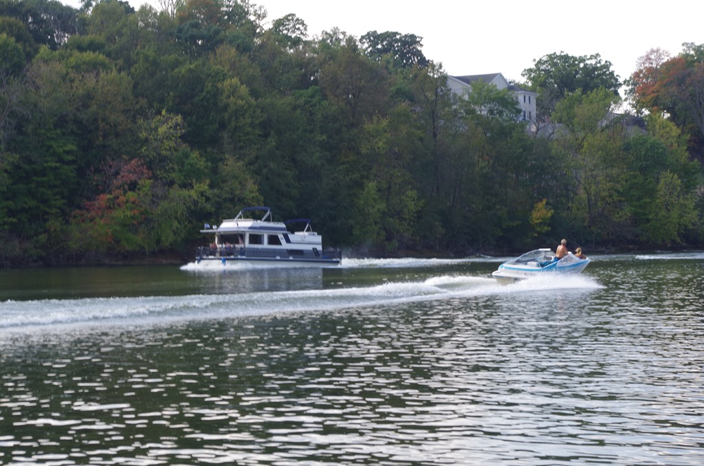 It is so funny to see George sitting on deck while we were motoring to Peoria. George was resting up on deck during the day. That is very unusual for him to get up on deck during the day time. Apparently, he was trying to stay cool in the breeze created by the moving boat.