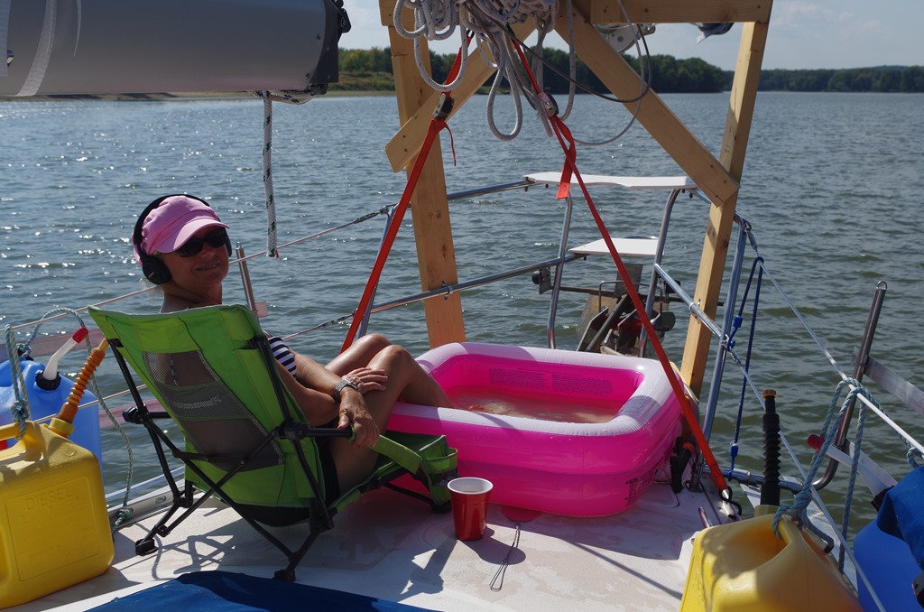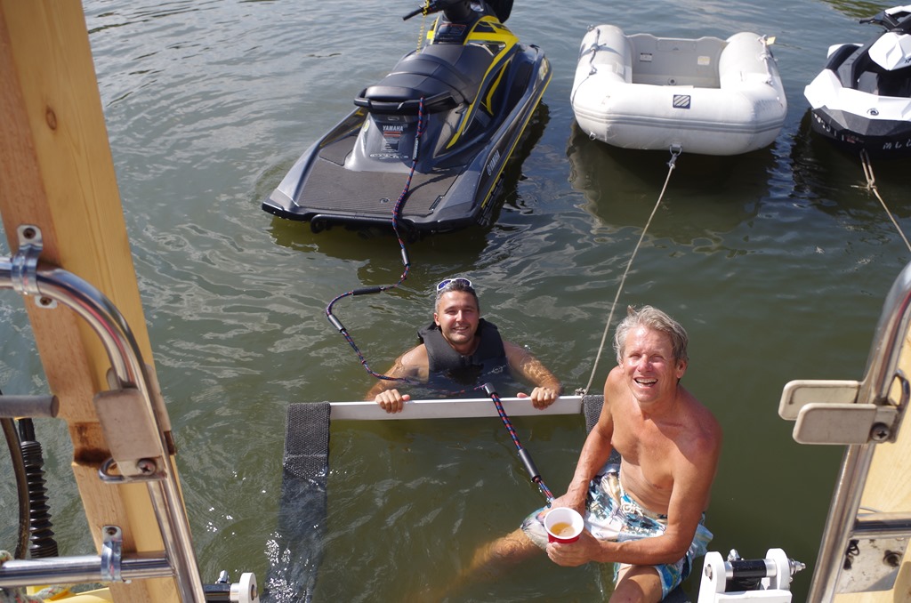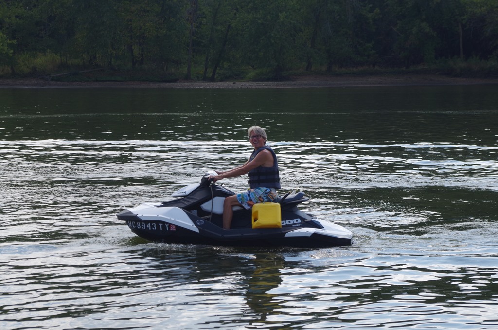 I’m enjoying some water time. Air temp is 93, water is 81. This lift has several uses one for Patch (I named the jet-ski) and me…LOL