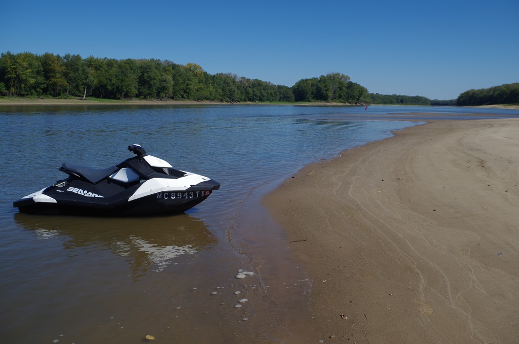 He jet-skied over to Mackinaw River. This sandy beach is where the locals stop.