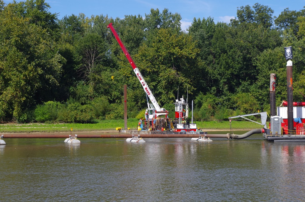 We motored past the Army Corp of Engineering dredging. They caught a fishing net in their grinder. This thing is like a gigantic vacuum cleaner with a grinder on the end of it.