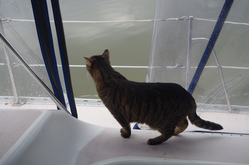 It is so funny to see George up during the day while we are going down the river. His little sniffer was sniffing something. Maybe he just liked watching the rain.