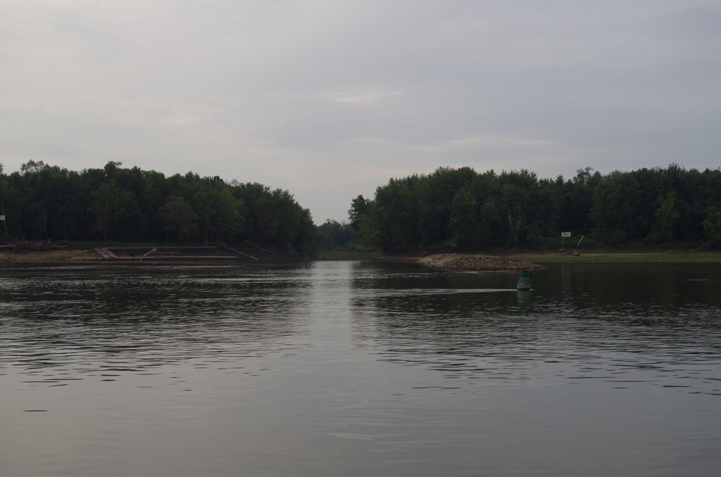 If you don’t follow the sign you will go to another dimension. If you turn right instead of left there is a huge ( monster) dam that can pull you over. Just up from this point in the Mississippi River is where the Missouri River junction is.