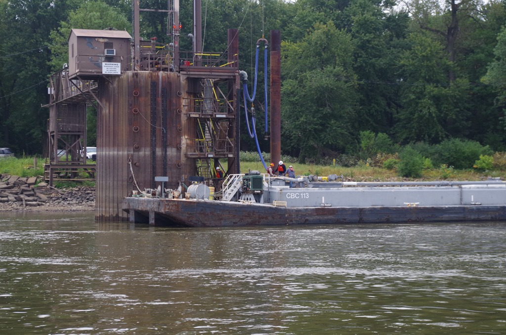 Here is a barge unloading fuel.