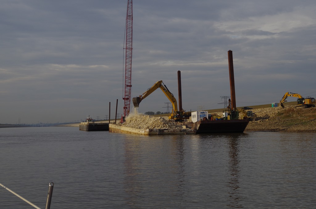 The rocks come off heavily loaded barges.