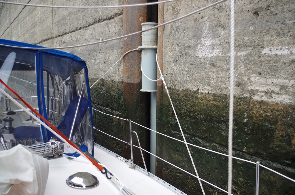 After they started lowering us down, I had to cover my ears. The floating bollards screeched. The sound was worse than someone scraping their nails on a chalk board!! It was horrible bad!