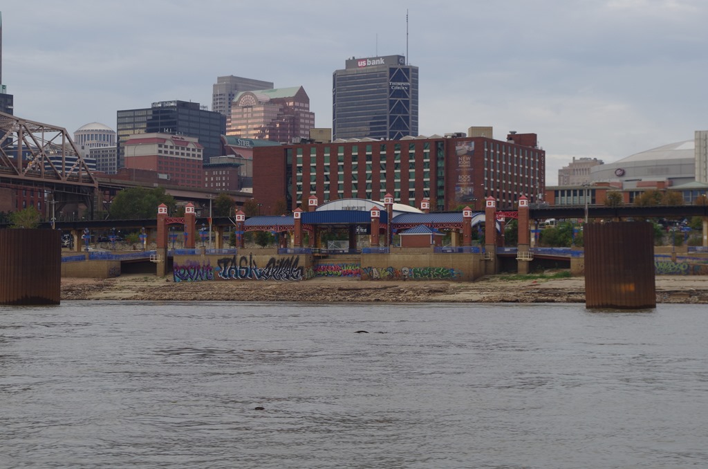 We anchored out again after two nights in Alton. We anchored in the Mississippi River just South of St. Louis at mile marker 164. The depth was 12 feet and the current was 2.2 mile an hour.