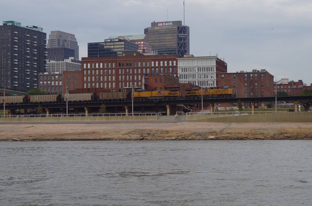 The first sign of St. Louis is the arch behind a few bridges. I surely think they could redo their water front area to dress it up some.