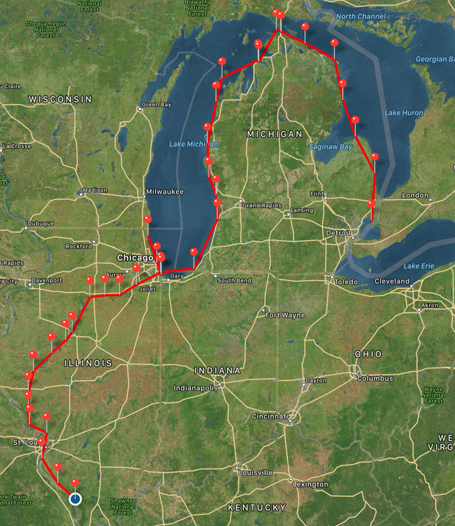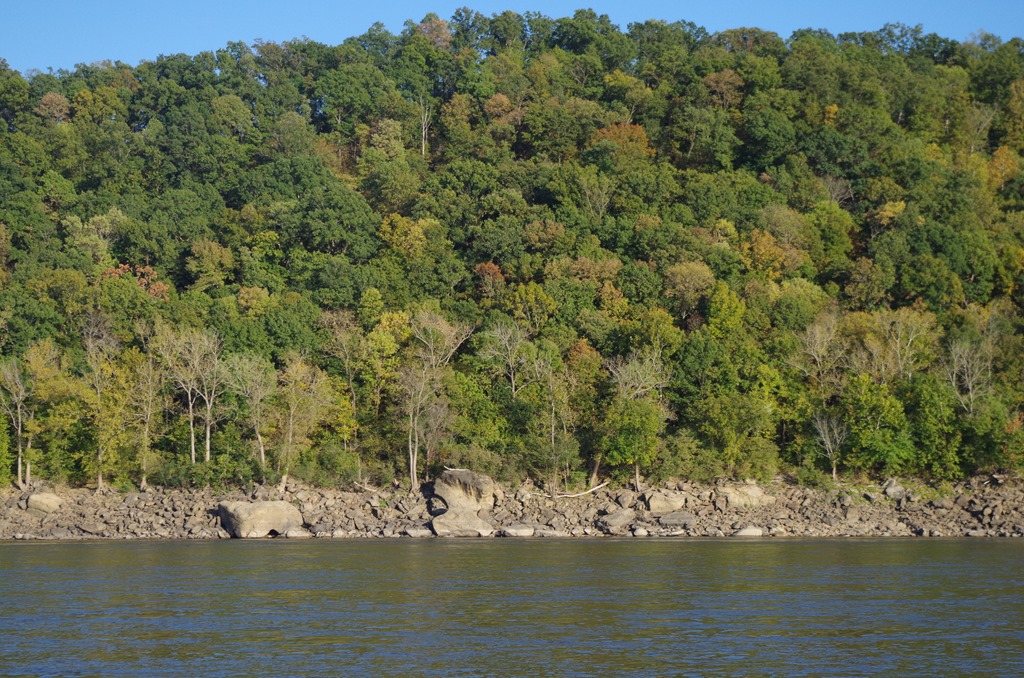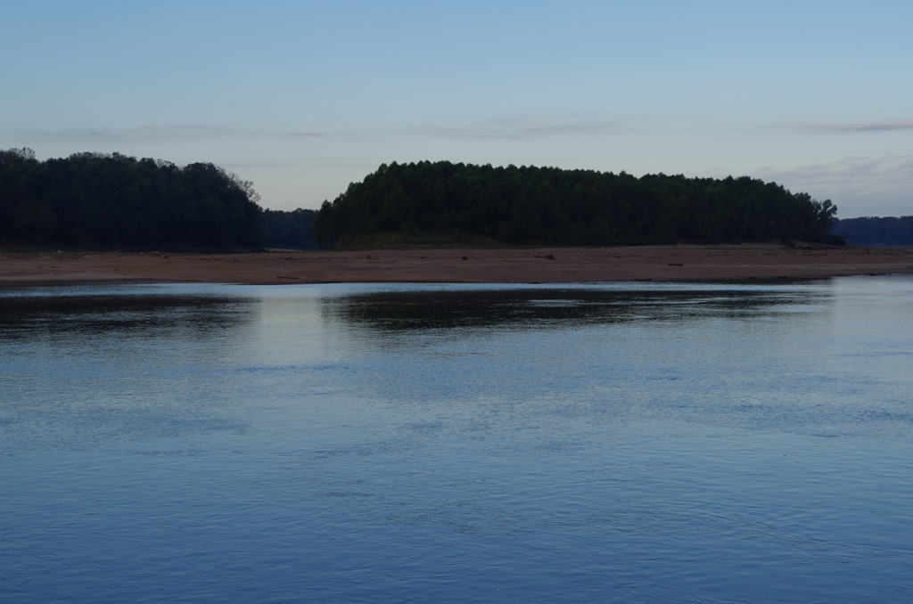 Later that afternoon the winds slowed down. We found a great anchorage just south of mile marker 117 across from Kaskaskia River Junction. In between the green buoy and a beautiful sandy beach.