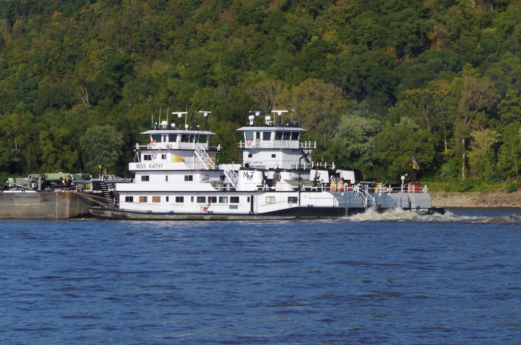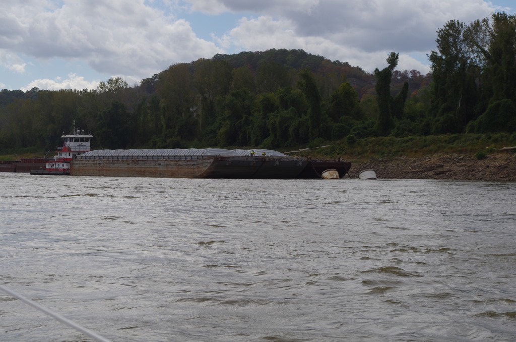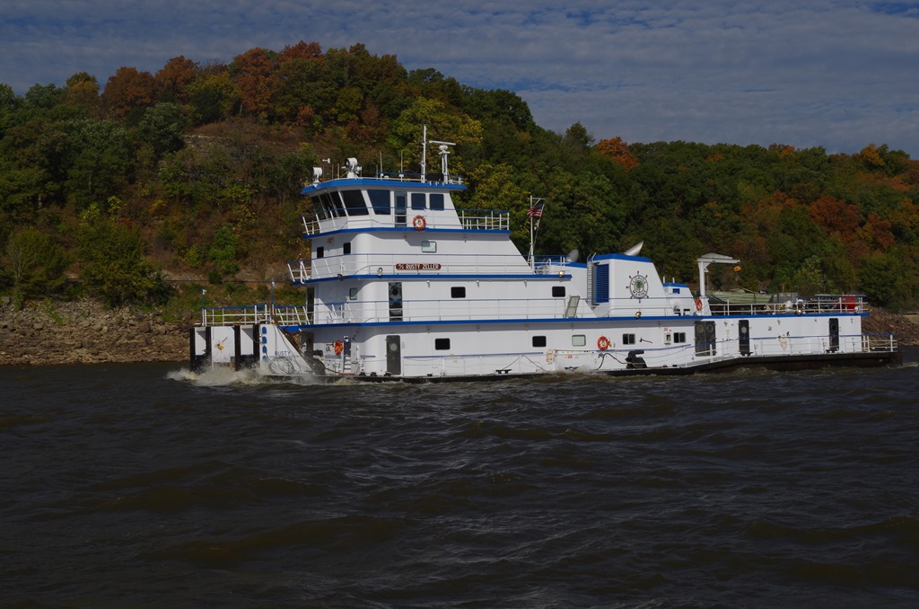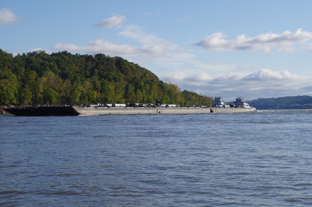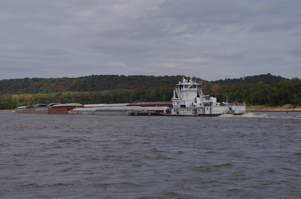 We were haled on the VHF by Rusty Zoler saying he would like to pass us on the (two bell). That means Starboard side. It is always so cool when we pass by tows. They always wave.