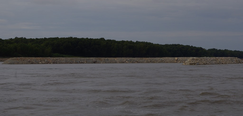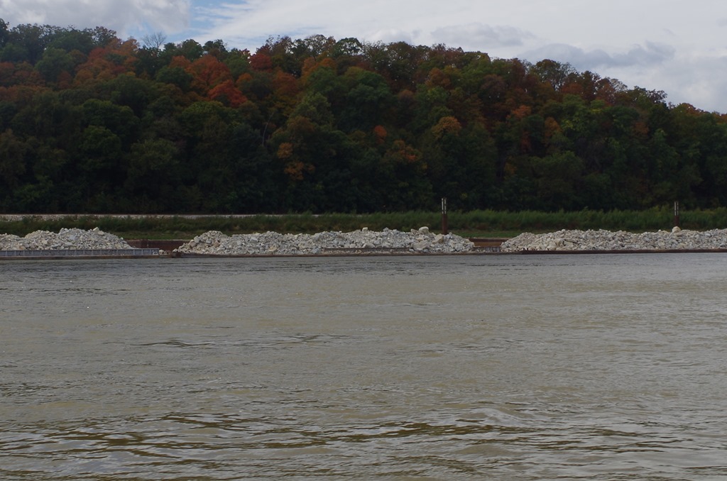 We noticed several barges loaded with stones that look like they were starting to sink.