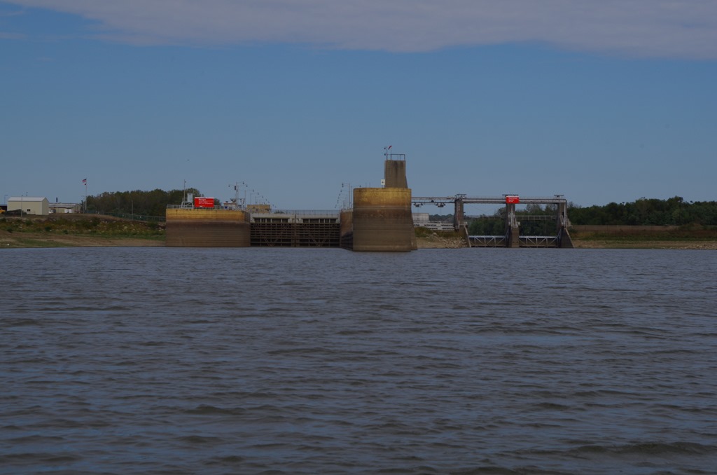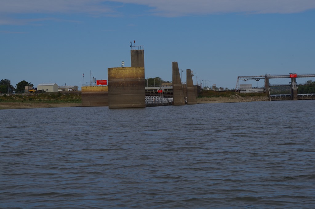 This is the Kaskaskia dam. They say you can get a peaceful night sleep here at the dam. You can tie up to the wall above or below the dam. Just remember to call the dam master.