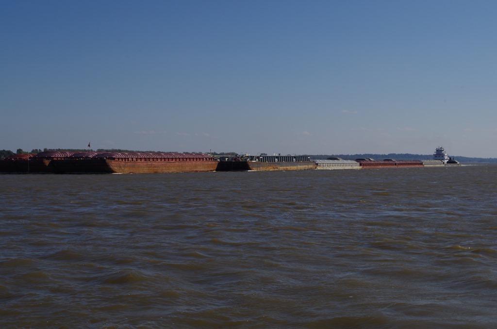 So far, I haven’t seen any difference in the tows or barges on the lower Mississippi compared to the upper. But the river is considerably wider and deeper.