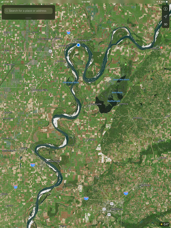 I thought this pretty neat. It shows the winding of the river. Doesn’t it look like a snake? We are at the blue dot.