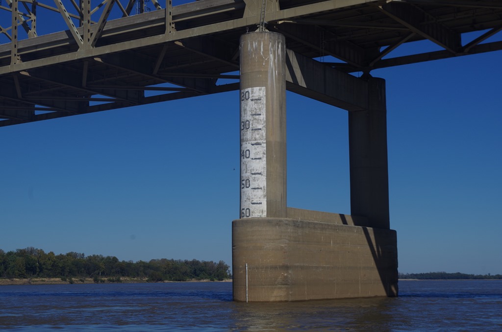 First sighting of Interstate 155 bridge. This is the first bridge since Cairo. This bridge is 7,102 feet long and is 78 feet wide. The longest span is 920 feet (280 m) and 520 feet (158 m). This is the only bridge over the Mississippi between Cairo Ill and Memphis TN. That is 85 miles the way the bird flies to Cairo and 55 miles to Memphis TN. A bit of a distance between bridges.