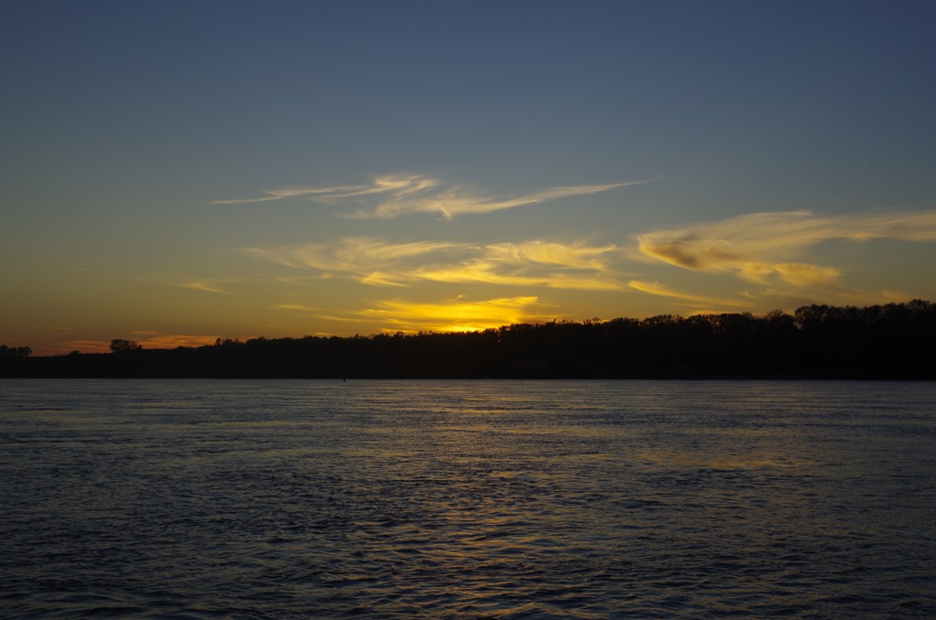 We found anchorage off Nebraska Point Mile Marker 809. The current is 1.7 mph along with the depth of 15.3 feet. The fall air is cooling down the water temps 68 degrees and falling. According to Wind-Alert the winds were low for the night. But let me tell you it was wrong! The winds blew 20 mph during the night. We slowly rocked in the small waves. Actually the rocking wasn’t bad. I just needed a lullaby…