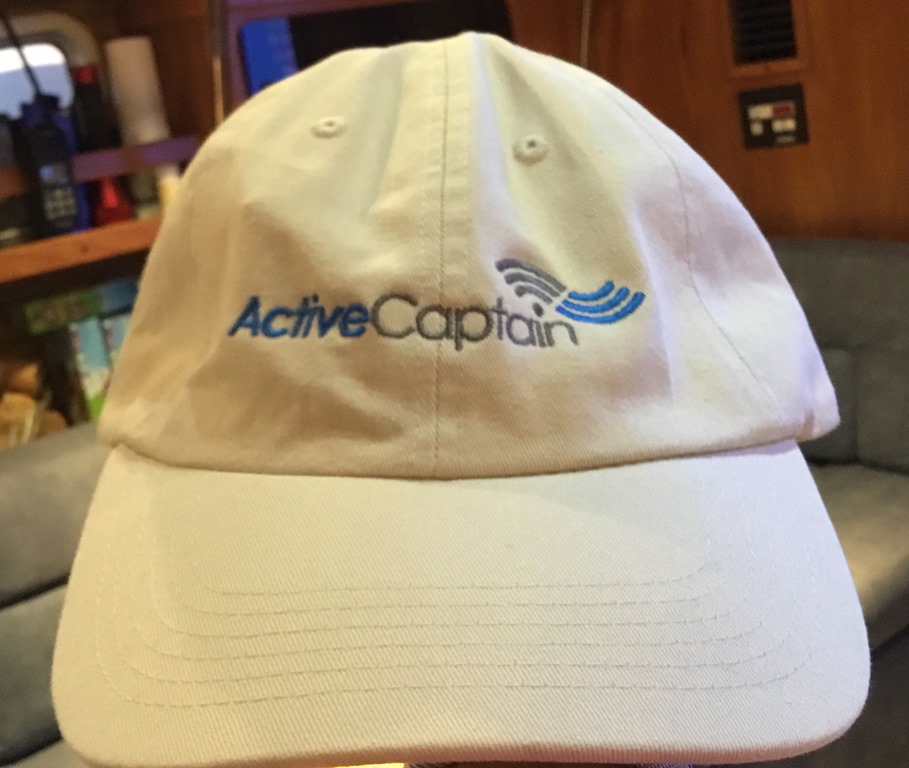 Bryce writes reviews on all our anchorages or marinas that we stay at for Active Captain and they sent him this cap. Pretty cool.