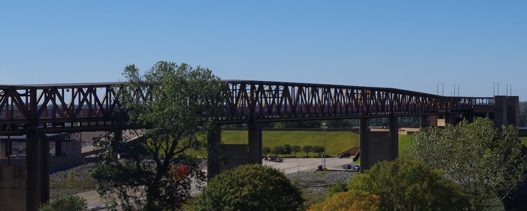 This is the pedestrian bridge that links the Marina to Main street Memphis. Under the walk way is a mono-rail trolley to transport people back and forth if you prefer not to walk. They had just repaired it today.