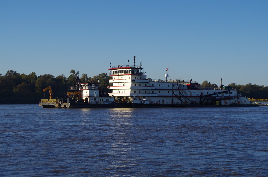 Here is an Army Corp of Engineers tow headed to an upstream dredging.