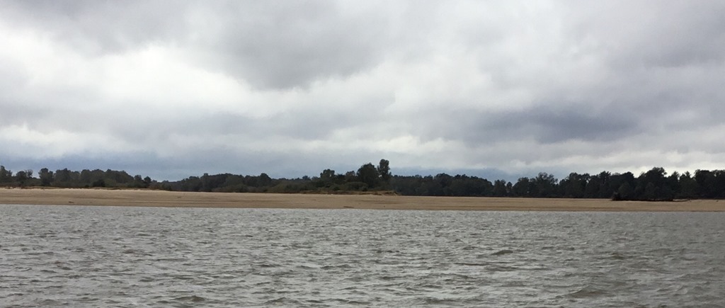 We anchored for the night on an inside bend of the river. We prefer inside bends because the bottom is sandy, the current is lower and the tows slow down for the bends. We anchored way inside a set of green buoys at mile marker 499 off a nice sandy shoreline. The water depth is 15.5 feet. Our current is 1.9 mph water temp is 60.6 degrees. Our latitude is 32.9381 longitude –91.0764 There wasn’t any sunshine yesterday; only rain and wind. Theses are the days we are thankful for our enclosure.
