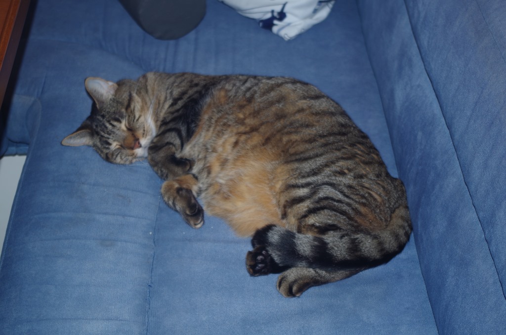 George is doing well. He seems to have adjusted well to being back on the boat. He sleeps a lot. He looks quite fat here.. must be the good life.
