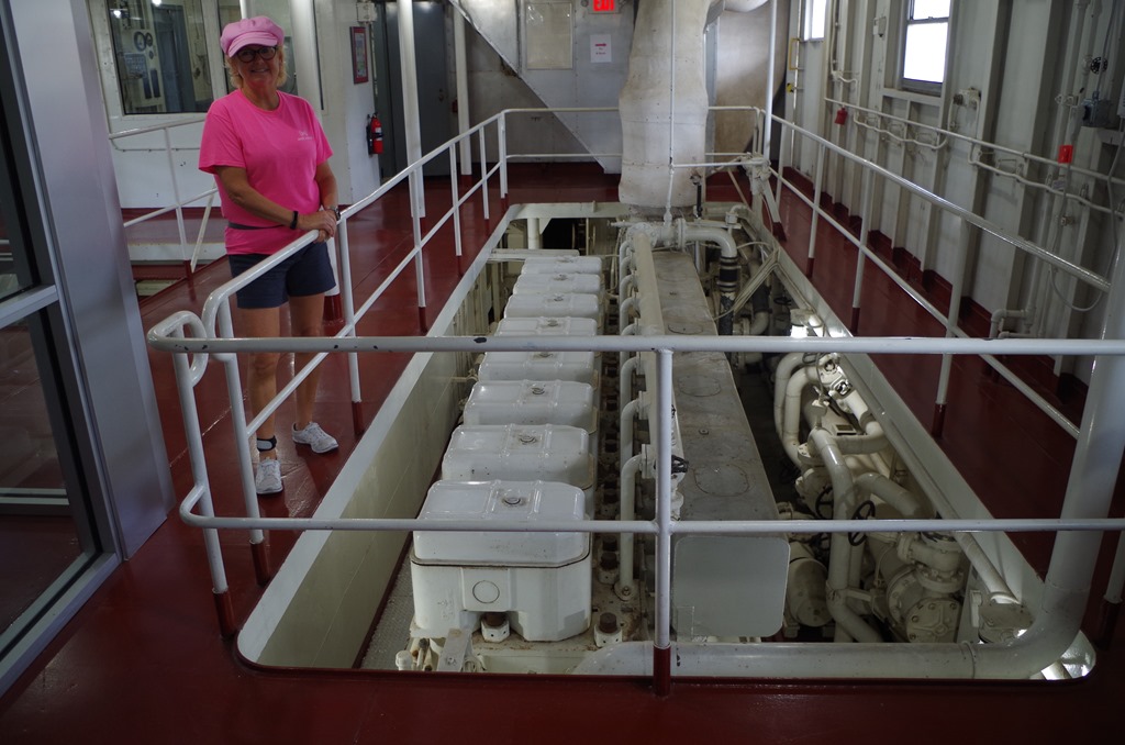 And of course Bryce had to take pictures of the two engines. We are standing at the upper level engine room.  Each engine is an 8 cylinder 1800 HP Diesel.