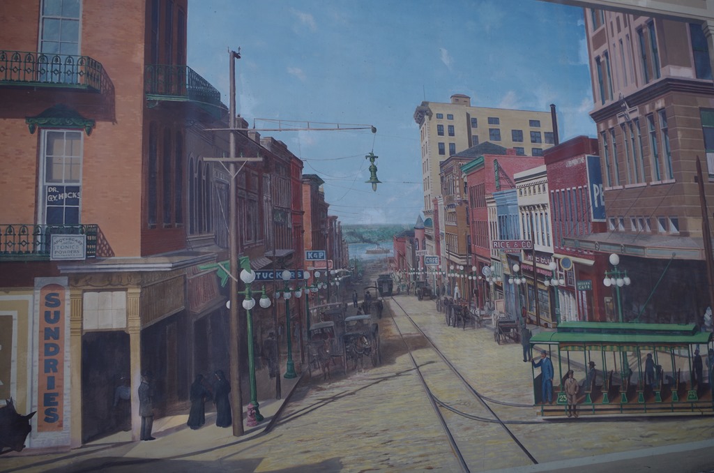 Here is a mural on the levee showing Vicksburg in the days of steam.
