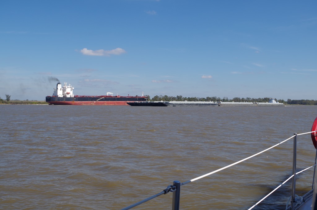 A freighter,going north and a Tow & barge going south we are on the Left descending Bank out of their way.
