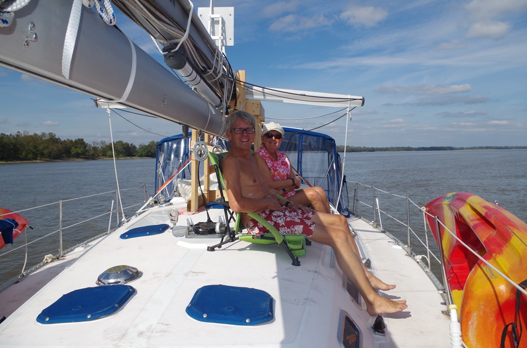 What a crazy day in paradise… Bryce turned on the generator and within seconds we had to shut it down. At first thought maybe it was the belt. After Bryce went into the compartment He found out it was the capacitor. Thank goodness we had a spare. Bryce took the day off work so we could get in 60 miles. We anchored in Grand View Anchorage with all types of freighters anchored with us. We came into Grrandview anchorage two hours after dark. Had a nice night-time cruise down the Lower Mississippi.