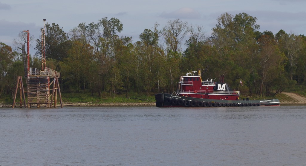 This was the view of our last pretty anchorage at Plaquemine Bend at Mile Marker 210. This was an excellent deep water anchorage. And we had no problem coming in after dark.