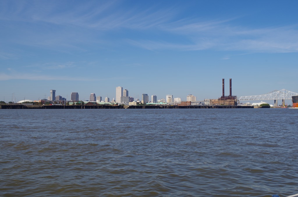 A view of New Orleans from the water.