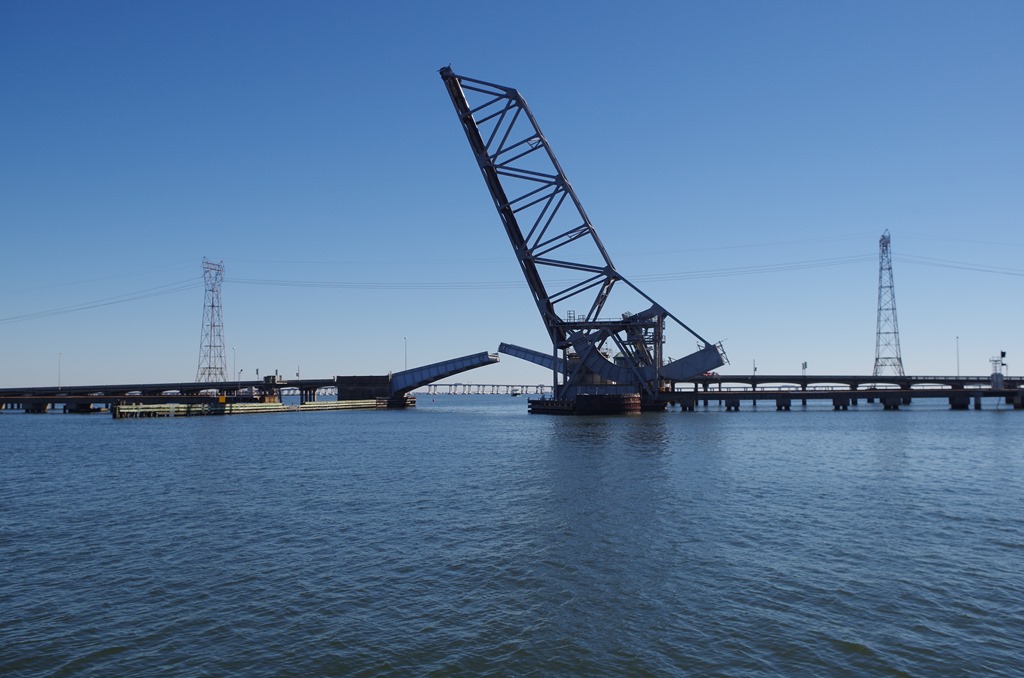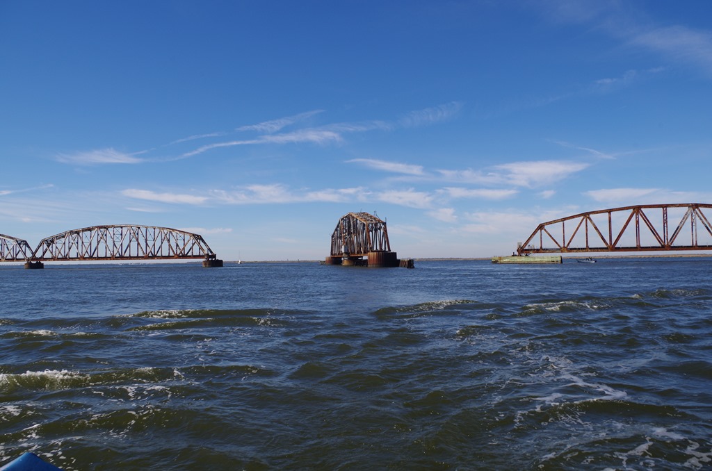 These are two bridges that had to be opened. The train bridge stays open unless a train is coming and the car bridge we had to call and request an opening. It was great; we didn’t even had to wait.