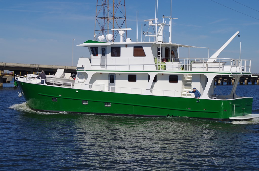 Bright green trawler sure is pretty looking. She was coming through the bridge from the other direction.