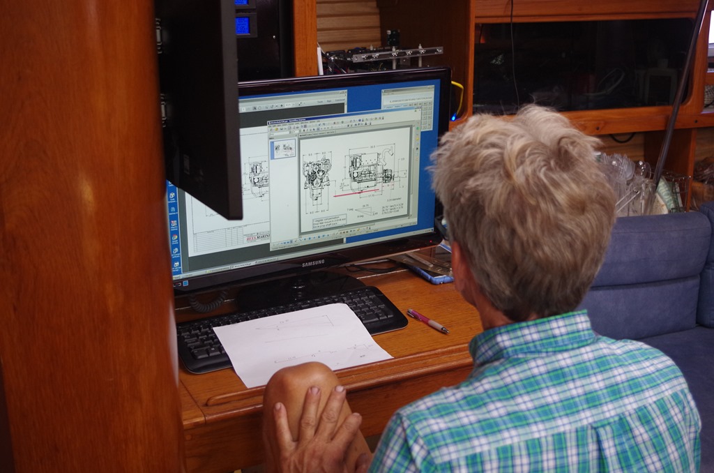 Bryce putting together his list of things needed. Along with measurements of this and that for the new engine. He has also priced parts to repair our little red engine.