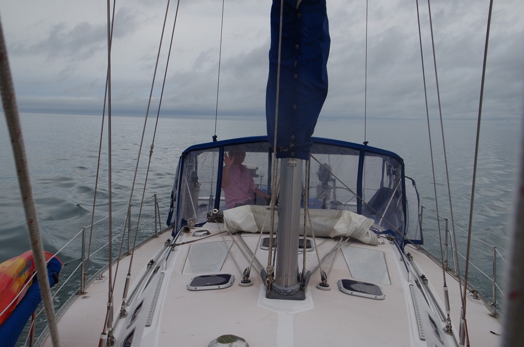 As we approached Fort Saint Joe, I went up to look around and Bryce… well he was navigating a wave to me.. LOL