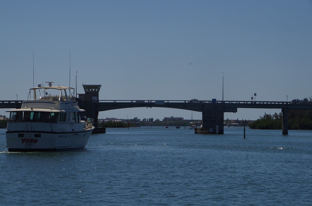 Our first Bridge Siesta Key. This is a Bascule bridge. As we waited for the bridge to open we were passed by this power boater. He didn’t want to follow us. LOL We go too slow.