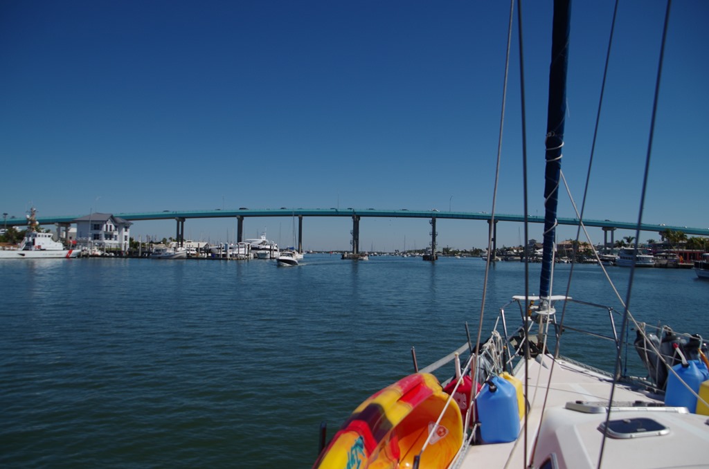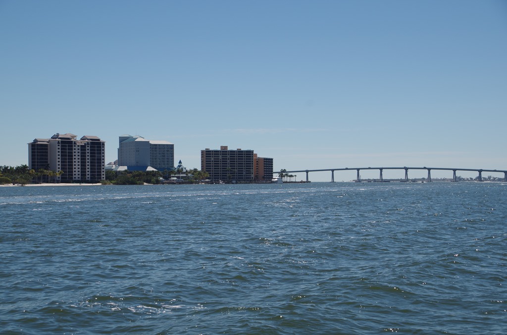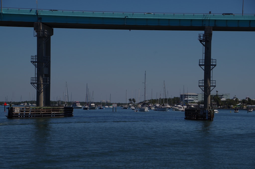 This is our first bridge to cross under it is 65 feet. The last trip, we took it out and headed to Naples. This time we are turning into a river to take us to Fort Myers Beach.