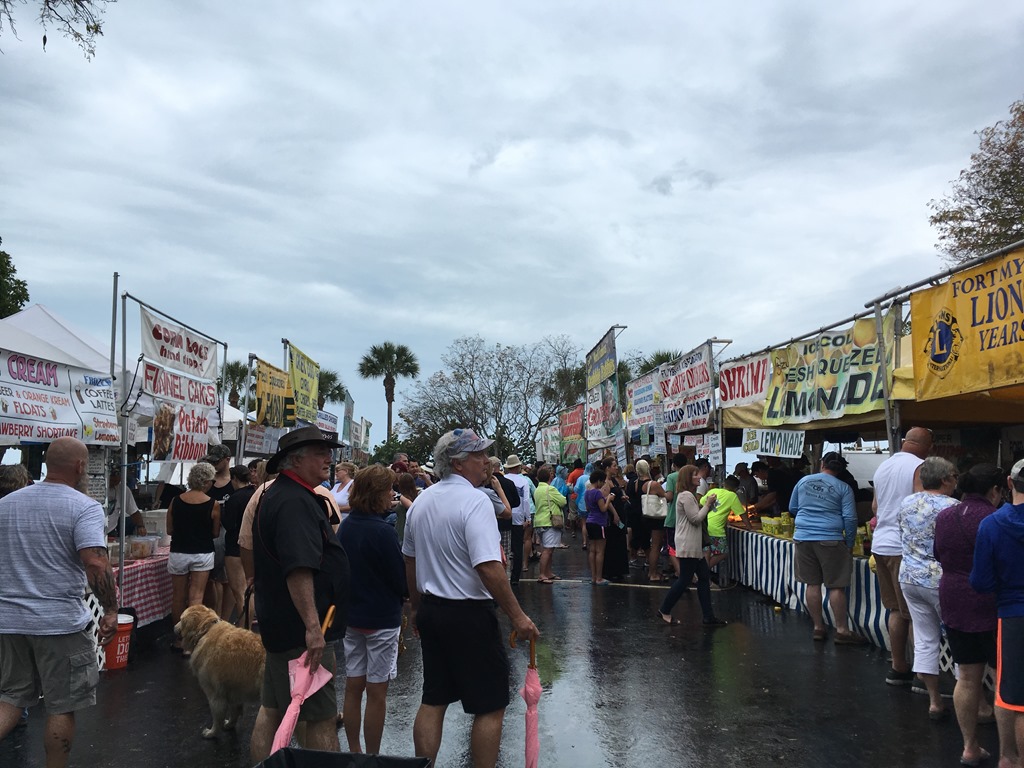 Florida has finally received it well deserved rain. But of course Fort Myers Beach had to get it during the shrimp festival. We didn’t care; no rain was going to stop us. We slipped on our rain gear and off we went. The streets were lined with spectators out to see the crafts and eat some healthy shrimp. I can say the coconut shrimp was delicious.