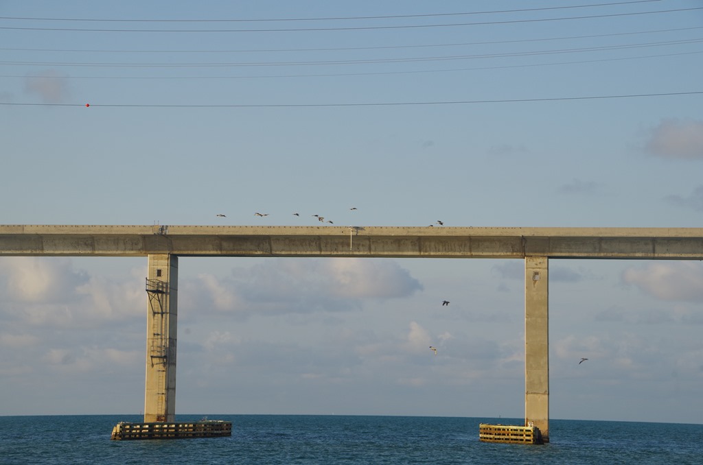 Seems like most of the bridges have nice fishing piers. This one reminds me of a Roman aqueduct. We are headed into the Atlantic towards Rodriguez Key for the night. This island will shield us from the easterly winds and waves from the Atlantic as we rest during the night. All of our anchorages are planed according to winds and waves to protect us from waves and winds. This planning is key to comfortable anchorages.