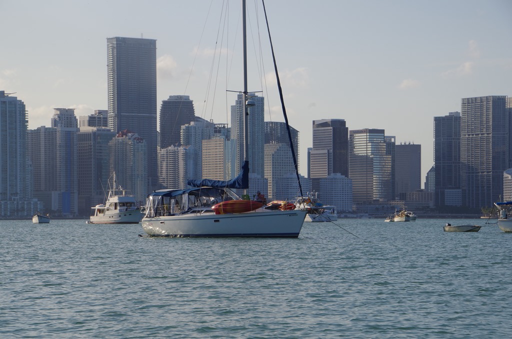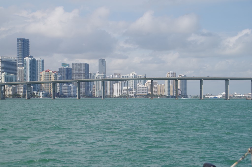 We motored in nearly 10 miles to reach our anchorage. As we made one of our turn, the Miami skyline came into view.