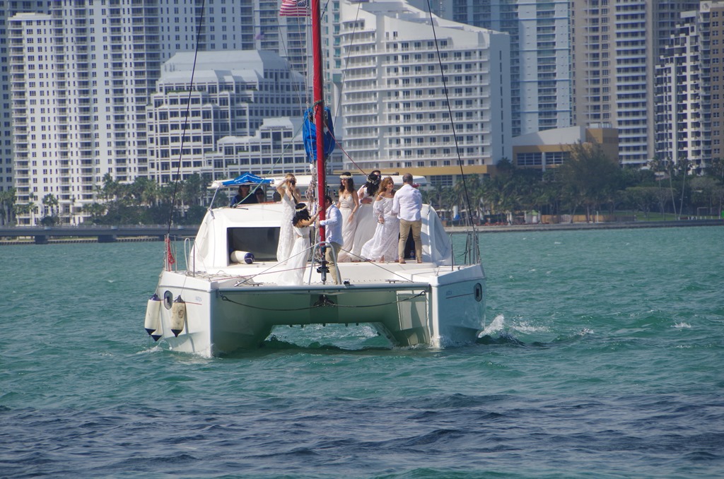Wedding day.. on a catamaran! How cool is that.. We passed them going under the bridge. Of course Bryce had to blare the horn and scared the crap not just out of me but the wedding party too. They busted up laughing. Congratulations to the lucky couple..