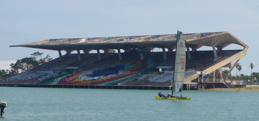 Just passed the bridge we came into the Marine Stadium basin. Unfortunately, it looks like Erma may have left her mark on the stadium too. If you look closely enough you’ll see missing seats.