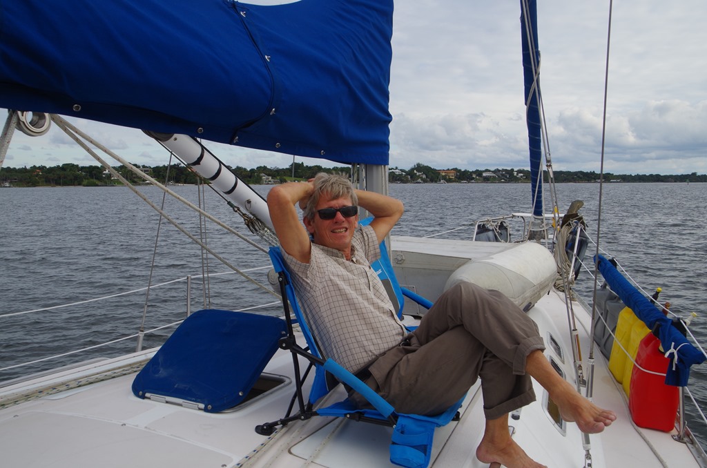St. Lucie’s River: Well, we tried several times in this area to find a deep enough anchorage. Due to the storms coming in over the next two days we wanted protection from the south west winds. At first we couldn’t find anything deep enough, Bryce said one more try then we will head out. We were lucky we found an area 500’ by 1000 feet area; plenty of room. We are in 10 feet deep at low tide, no current. Yeah the water temperature is 71 degrees. Get this no crab pot patch