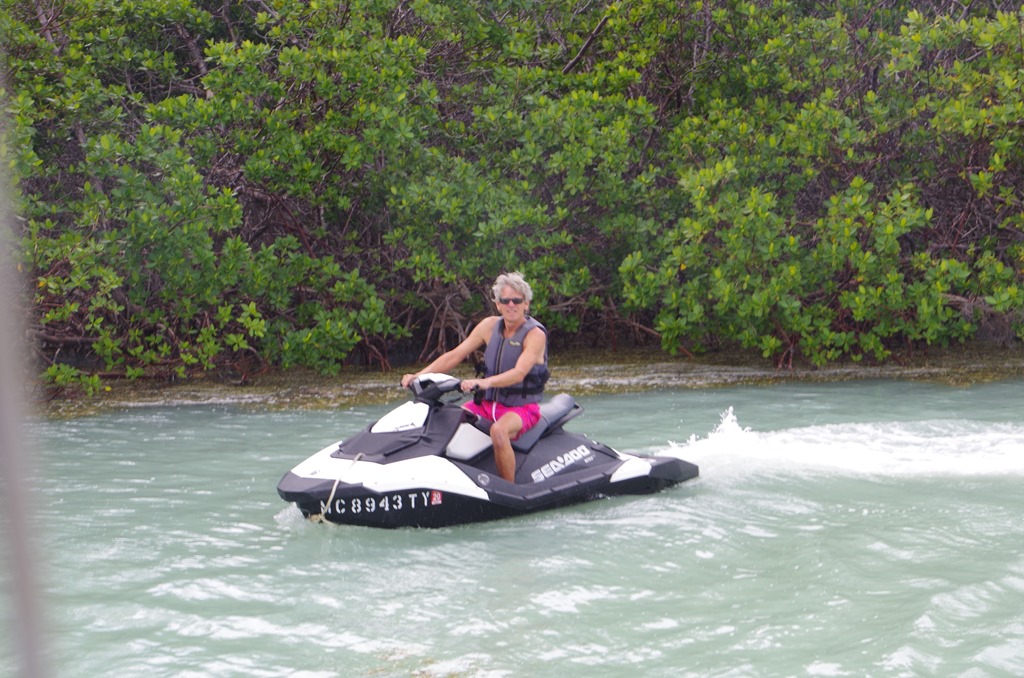 Bryce was out moving our stern anchor from the port to starboard side.  We have two bow anchors, a stern anchor and two lines tied to the mangroves.  These lines keep us steady in the 30+ knot winds.