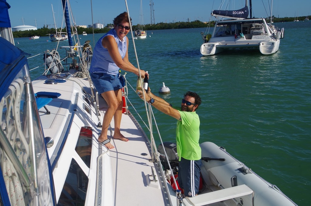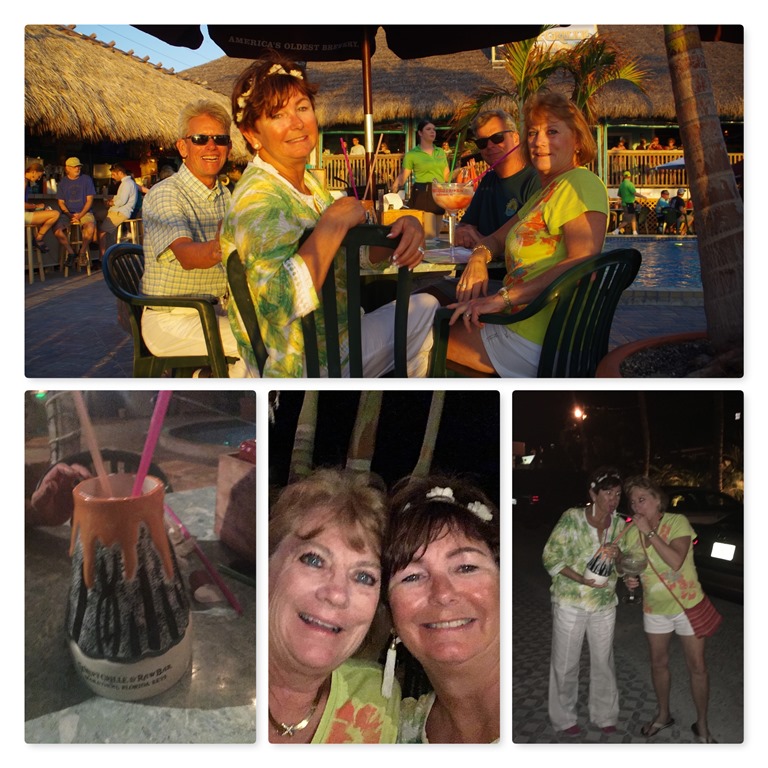 The fun never ends here in Marathon. We met Jon & Diane on the Erie Canal 2 years ago. We followed each other on FB. When Diane heard we were going to be here, she contacted me and said they would be here on the first. We finally met up at the Sunset grill and had a great dinner and a Tsunami. Its a drink made for two. I am surprised I was able to walk back to our dinghy after they dropped us off at the marina. LOL