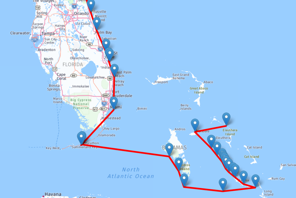 We are presently anchored in the Eleuthera Islands. You can find our position at https://trackmytour.com/2p4qC
